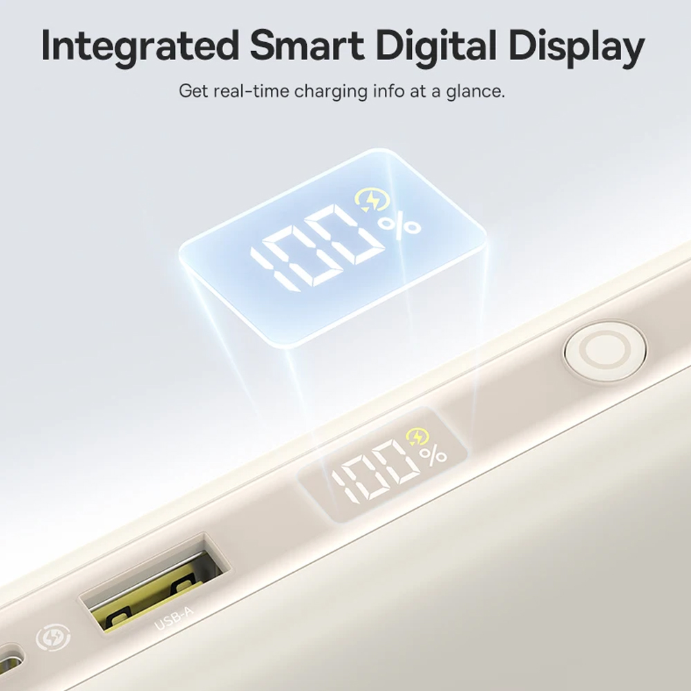 Hlavní výhody: Výkon až 100W zvládne nabít notebook, masivní kapacita 20.000mAh, integrované duální USB-C kabely a přehledný digitální displej.