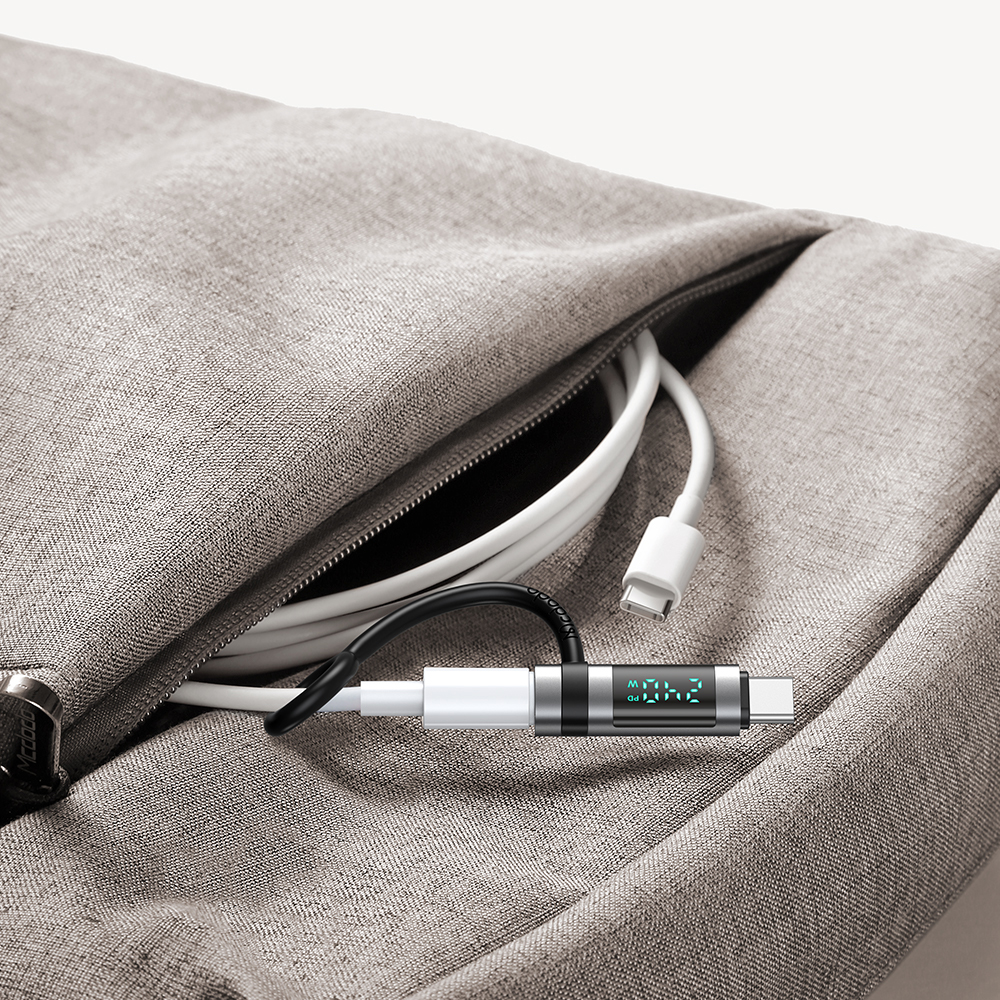 Adaptér Mcdodo Pigeon Series (OT-2620) se pyšní moderním a minimalistickým designem v černé barvě, který skvěle doplní vaše zařízení. Tělo adaptéru je vyrobeno z prémiové hliníkové slitiny, což zajišťuje nejen elegantní vzhled, ale také výjimečnou odolnost proti opotřebení a poškození. Jeho kompaktní rozměry a nízká hmotnost z něj dělají ideálního společníka na cesty. Praktický silikonový háček umožňuje snadné připevnění k vašemu kabelu nebo klíčům, takže ho budete mít vždy po ruce. Navíc, integrovaný digitální displej vám v reálném čase ukazuje aktuální nabíjecí výkon, což je skvělá funkce pro kontrolu a optimalizaci nabíjení.