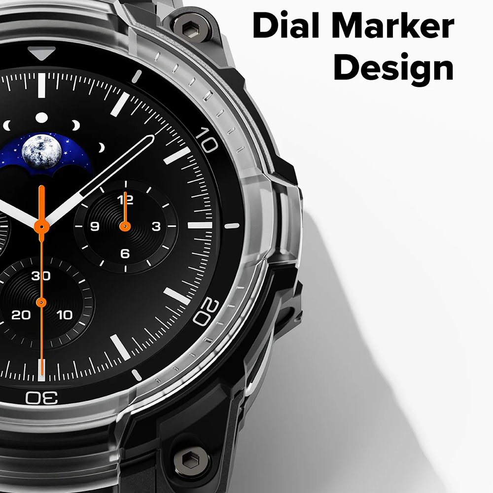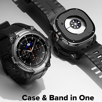 Kryt Ringke Rugged Gear se pyšní odolným a zároveň sofistikovaným designem v elegantní černé barvě. Jeho robustní konstrukce, inspirovaná taktickým vybavením, poskytuje maximální ochranu proti nárazům, poškrábání a pádům. Přesné výřezy zajišťují snadný přístup ke všem tlačítkům, senzorům a funkcím hodinek, včetně bezproblémového nabíjení. Materiál, ze kterého je kryt vyroben, je vysoce kvalitní a odolný, což zaručuje dlouhou životnost a spolehlivost. Díky svému promyšlenému designu se kryt snadno instaluje a perfektně sedí na těle hodinek, aniž by přidával zbytečný objem.
