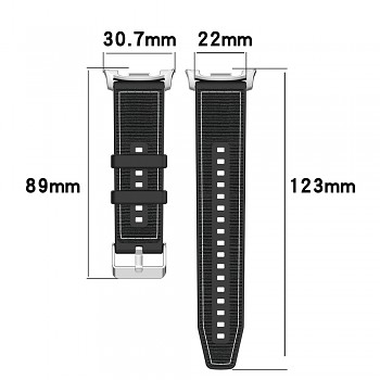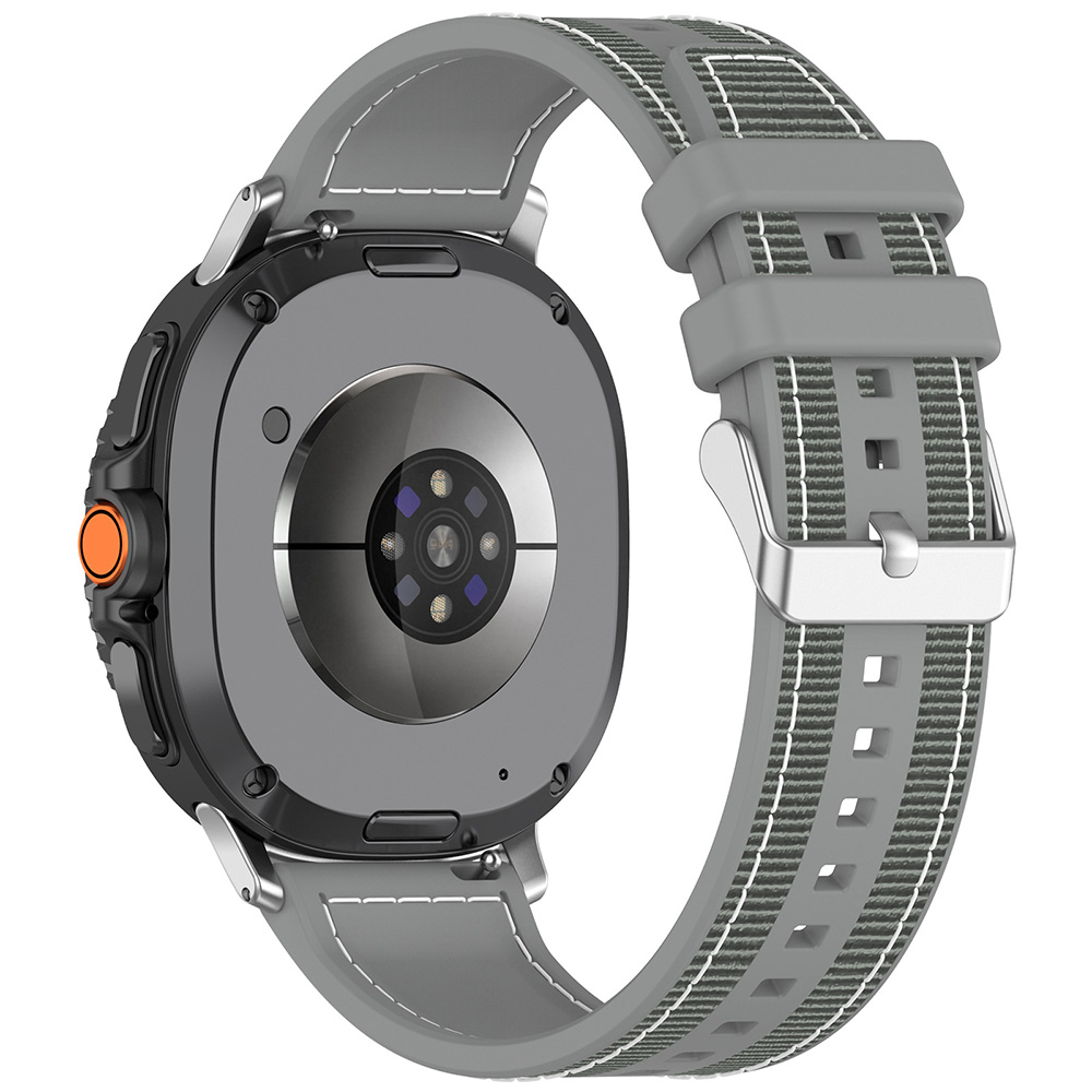 Řemínek Techsuit se pyšní hybridním designem, který kombinuje to nejlepší z různých materiálů. Vnější strana je opatřena texturovaným povrchem, který připomíná tkaninu, a je doplněna elegantním bílým prošíváním, dodávajícím řemínku sofistikovaný vzhled. Vnitřní strana je vyrobena z hladkého silikonu, který zajišťuje maximální komfort při nošení a je příjemný na pokožce. Šedá barva řemínku je univerzální a snadno se kombinuje s různými styly oblečení. Zapínání je řešeno klasickou kovovou přezkou ve stříbrném odstínu, která zaručuje spolehlivé a bezpečné upevnění.