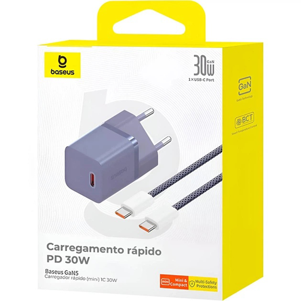 Baseus – nástěnná nabíječka (P10110902523-00) – včetně kabelu typu C, GaN, typ C, rychlé nabíjení, 30W, 1m – půlnoční fialováPředstavujeme vám Baseus GaN nástěnnou nabíječku v elegantní půlnoční fialové barvě, která je ztělesněním moderního nabíjení. Tato kompaktní a výkonná nabíječka je navržena tak, aby splňovala požadavky dnešních uživatelů na rychlost a efektivitu. Díky pokročilé technologii GaN (nitrid gallia) je nabíječka výrazně menší a lehčí než tradiční nabíječky, přičemž si zachovává vysoký výkon a nižší provozní teplotu. Její minimalistický design s matným povrchem a zaoblenými hranami se skvěle hodí do každého interiéru a je ideální na cesty.