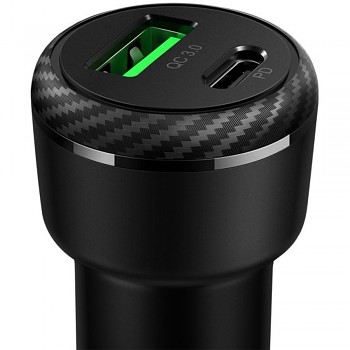 Autonabíječka Mcdodo CC-5970 v elegantní černé barvě se pyšní moderním a minimalistickým designem, který skvěle zapadne do interiéru každého vozu. Horní část nabíječky je zdobena stylovou texturou imitující karbonové vlákno, což jí dodává prémiový vzhled. Tělo nabíječky je vyrobeno z matného materiálu, který je příjemný na dotek a odolný proti otiskům prstů. Díky kompaktním rozměrům nezabere v autě téměř žádné místo.