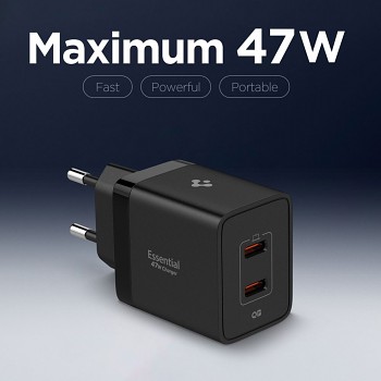 Spigen – nástěnná nabíječka Essential (EE472EU) – 2× typ C, rychlé nabíjení, Quantum Boost, 47 W – černáPředstavujeme Spigen Wall Charger Essential (EE472EU), elegantní a výkonnou nástěnnou nabíječku navrženou pro moderní životní styl. S touto nabíječkou získáte nejen bleskurychlé nabíjení, ale také spolehlivost a kvalitu, kterou očekáváte od značky Spigen. Díky dvěma portům USB-C a technologii Quantum Boost je ideálním řešením pro napájení všech vašich kompatibilních zařízení.