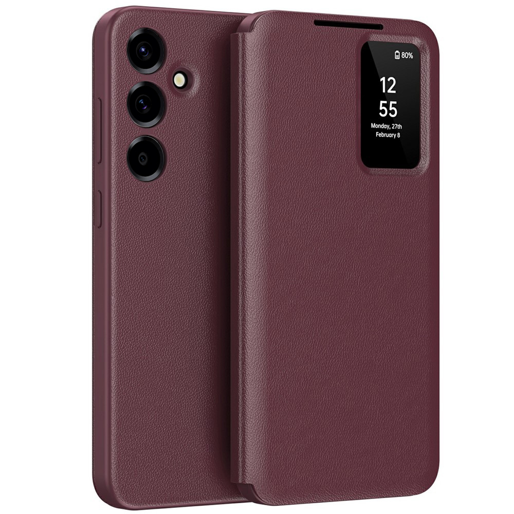 Design produktu: Flipové pouzdro disponuje červeným odklápěcím krytem a praktickým průzorem v přední části. Díky okénku můžete mít neustálý přehled o čase a oznámeních bez nutnosti kryt plně otevírat, zatímco konstrukci lze složit a využít ji jako stabilní stojánek na stůl.