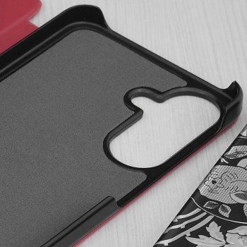 Pouzdro eFold Series se pyšní sofistikovaným designem s texturovaným povrchem v odstínu syté červené, který působí luxusně a příjemně na dotek. Jeho hlavní předností je praktické otevírání do boku, které chrání displej telefonu před poškrábáním a nárazy. Přední strana pouzdra disponuje průhledným okénkem, které umožňuje rychlý přehled o čase, datu a notifikacích, aniž byste museli pouzdro otevírat. Vnitřní strana je vybavena přesnými výřezy pro fotoaparát, konektory, mikrofony a reproduktory, což zajišťuje plnou funkčnost vašeho zařízení bez jakéhokoli omezení. Pouzdro lze navíc složit do praktického stojánku pro pohodlné sledování videí.