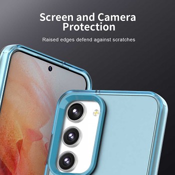 Pouzdro Techsuit CandyCase MagSafe se pyšní průhledným designem s jemným modrým nádechem, který nechá vyniknout originální krásu vašeho Samsung Galaxy S23. Okraje pouzdra a rámeček kolem fotoaparátu jsou zvýrazněny sytější modrou barvou, což dodává pouzdru dynamický a svěží vzhled. Na zadní straně je elegantně integrován kruhový prvek MagSafe v odpovídajícím modrém odstínu, který zajišťuje perfektní kompatibilitu s MagSafe příslušenstvím. Pouzdro je vyrobeno z kvalitních a odolných materiálů, které poskytují spolehlivou ochranu proti nárazům, poškrábání a každodennímu opotřebení. Přesné výřezy zaručují bezproblémový přístup ke všem portům a tlačítkům, zatímco zvýšené okraje chrání displej a objektivy fotoaparátu před přímým kontaktem s povrchem.