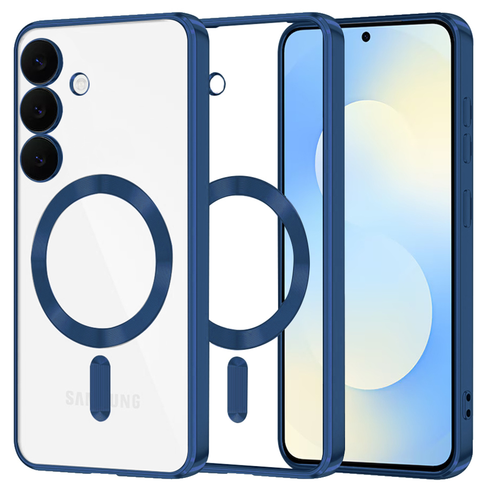 Kryt Techsuit Luxury Crystal MagSafe se pyšní křišťálově čistým transparentním provedením, které nechá vyniknout originální design vašeho Samsung Galaxy S25 FE. Elegantní hluboce modrý rámeček a precizně zpracované kroužky kolem fotoaparátu dodávají pouzdru sofistikovaný vzhled. Integrovaný MagSafe kompatibilní kroužek na zadní straně, rovněž v modré barvě, zajišťuje silné a spolehlivé připojení pro veškeré MagSafe příslušenství. Díky 38 integrovaným magnetům poskytuje pouzdro mimořádně silnou magnetickou sílu, která je až o 200 % vyšší než u běžných krytů, což zaručuje stabilní a efektivní bezdrátové nabíjení a uchycení. Design je štíhlý, elegantní a minimalistický, s přesnými výřezy pro konektory, mikrofony, reproduktory a fotoaparáty, které zajišťují plnou funkčnost bez omezení. Tlačítka mají jistý stisk a přístup k nabíjecímu portu je vždy bezproblémový.