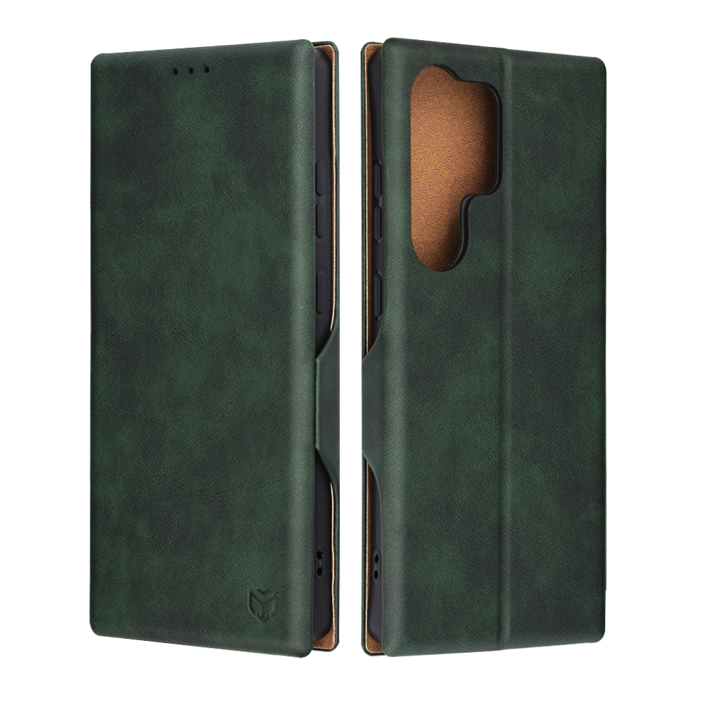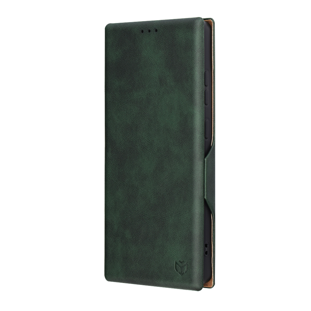 Pouzdro Techsuit Safe Wallet Plus se pyšní sofistikovaným designem s texturou připomínající broušenou kůži v elegantním zeleném odstínu, který dodává vašemu telefonu punc luxusu a originality. Vnitřní strana pouzdra je vyvedena v kontrastní hnědé barvě, což podtrhuje jeho prémiový vzhled. Díky preciznímu zpracování a magnetickému zavírání, které je diskrétně integrováno do boční strany, zůstane váš telefon vždy bezpečně chráněn.