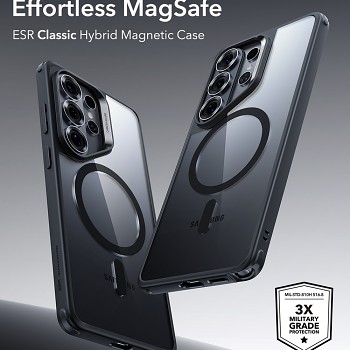 ESR - Classic Hybrid HaloLock - Samsung Galaxy S26 Ultra - průhledná černáDopřejte svému telefonu ochranu, která nedělá kompromisy. Kryt ESR Classic Hybrid HaloLock kombinuje minimalistický design s vojenskou odolností. Díky dokonale čirým zádům nechá vyniknout původní krásu vašeho zařízení, zatímco kouřově černé okraje mu dodají elegantní vzhled. Zvýšené rámečky kolem displeje a fotoaparátu poskytují nekompromisní ochranu proti poškrábání při pokládání na rovné povrchy.