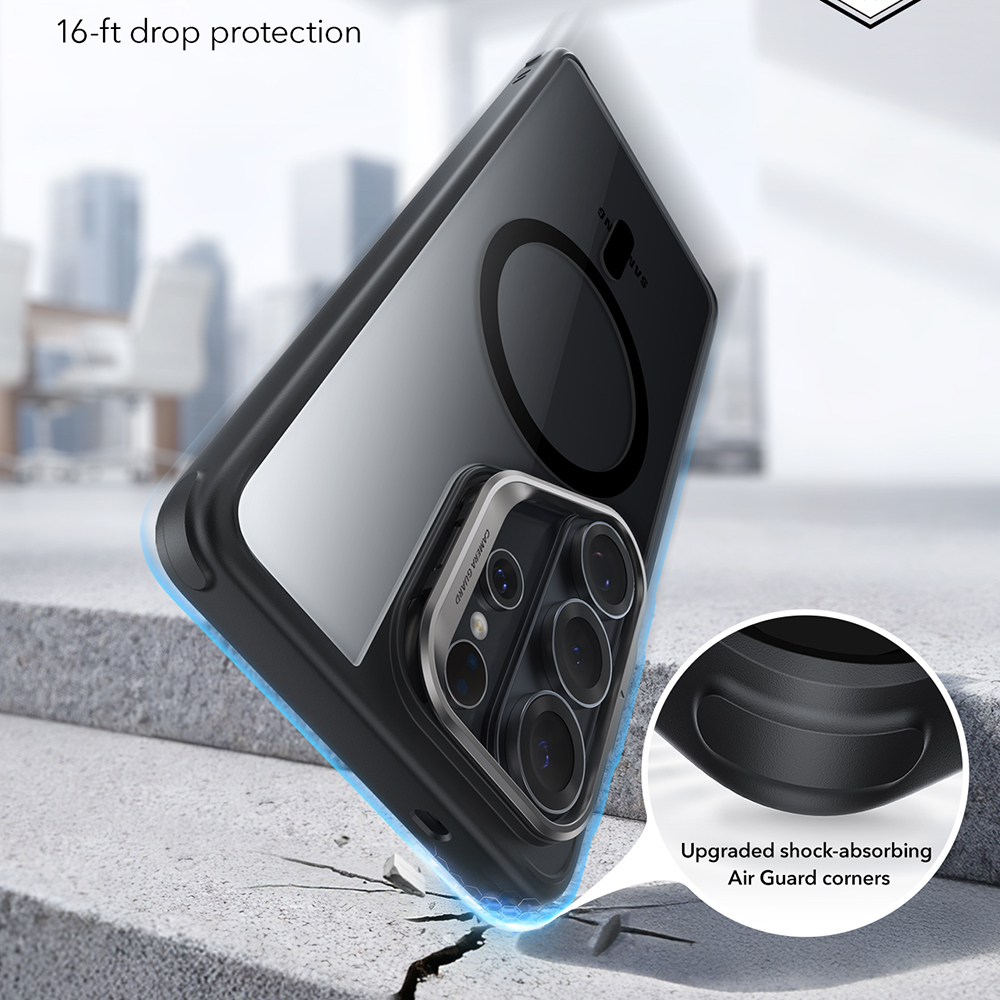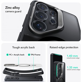 ESR - Classic Hybrid HaloLock se stojánkem - Samsung Galaxy S26 Ultra - průhledná černáDopřejte svému telefonu nekompromisní ochranu, která nedělá kompromisy v designu. Kryt ESR Classic Hybrid s technologií HaloLock™ je navržen tak, aby dokonale ochránil váš telefon a zároveň rozšířil jeho možnosti. Díky hybridní konstrukci z pevného akrylového zadního panelu a pružného rámu z TPU poskytuje ochranu na vojenské úrovni proti pádům a nárazům. Záda krytu jsou navíc odolná proti poškrábání a žloutnutí, takže design vašeho telefonu zůstane stále viditelný a jako nový.