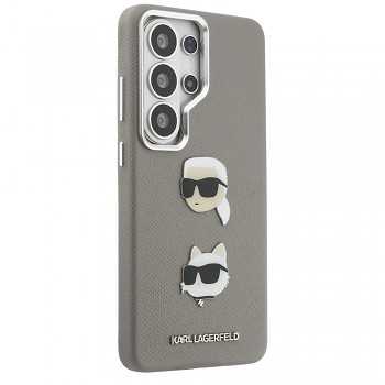 Kryt Karl Lagerfeld - Wrapped Leather Saffiano with K&C Head Pin - Samsung Galaxy S26 Ultra šedýLuxusní vzhled tohoto krytu podtrhuje zadní strana v atraktivním šedém provedení se specifickou křížovou texturou Saffiano. Minimalistický design doplňuje decentní kovový pin (odznáček) představující Karla a Choupette.