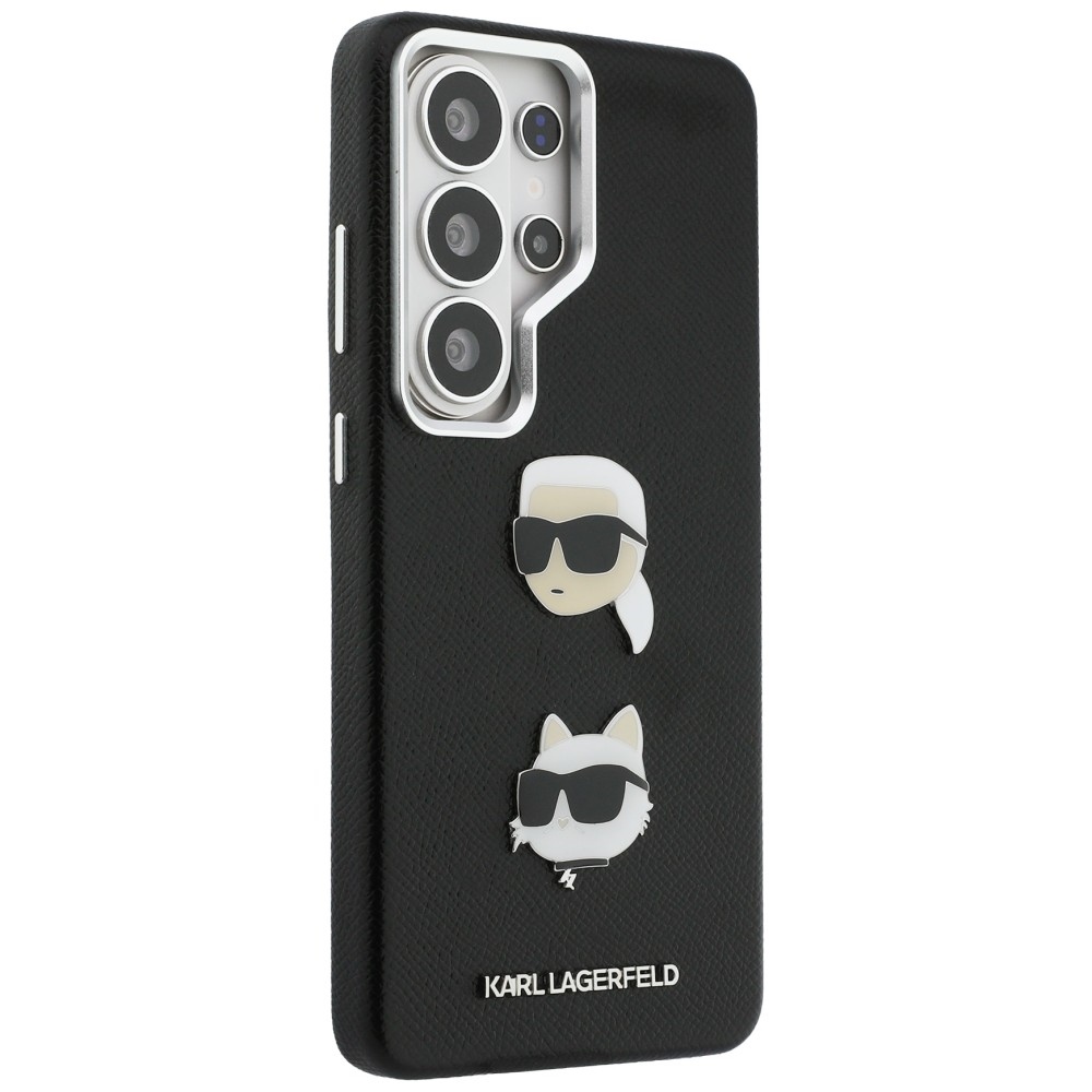 Kryt Karl Lagerfeld - Wrapped Leather Saffiano with K&C Head Pin (KLHCS26LPSFDHPOK) - Samsung Galaxy S26 Ultra ČernýTento kousek kombinuje oblíbenou texturu Saffiano s drobnými, ale velmi detailními kovovými ikonami hlavy Karla a jeho kočky Choupette.