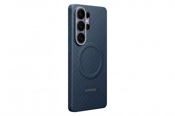 Kryt magnetický Samsung Carbon (EF-KS948SCE) pro Galaxy S26 Ultra tmavě modrýZadní kryt se vyznačuje ultratenkou konstrukcí s tloušťkou pouhých 0,8 mm a minimalistickým designem v tmavě modrém odstínu. Jemná vláknitá struktura na zadní straně poskytuje pevný úchop. Modul s integrovaným magnetem není vizuálně patrný.