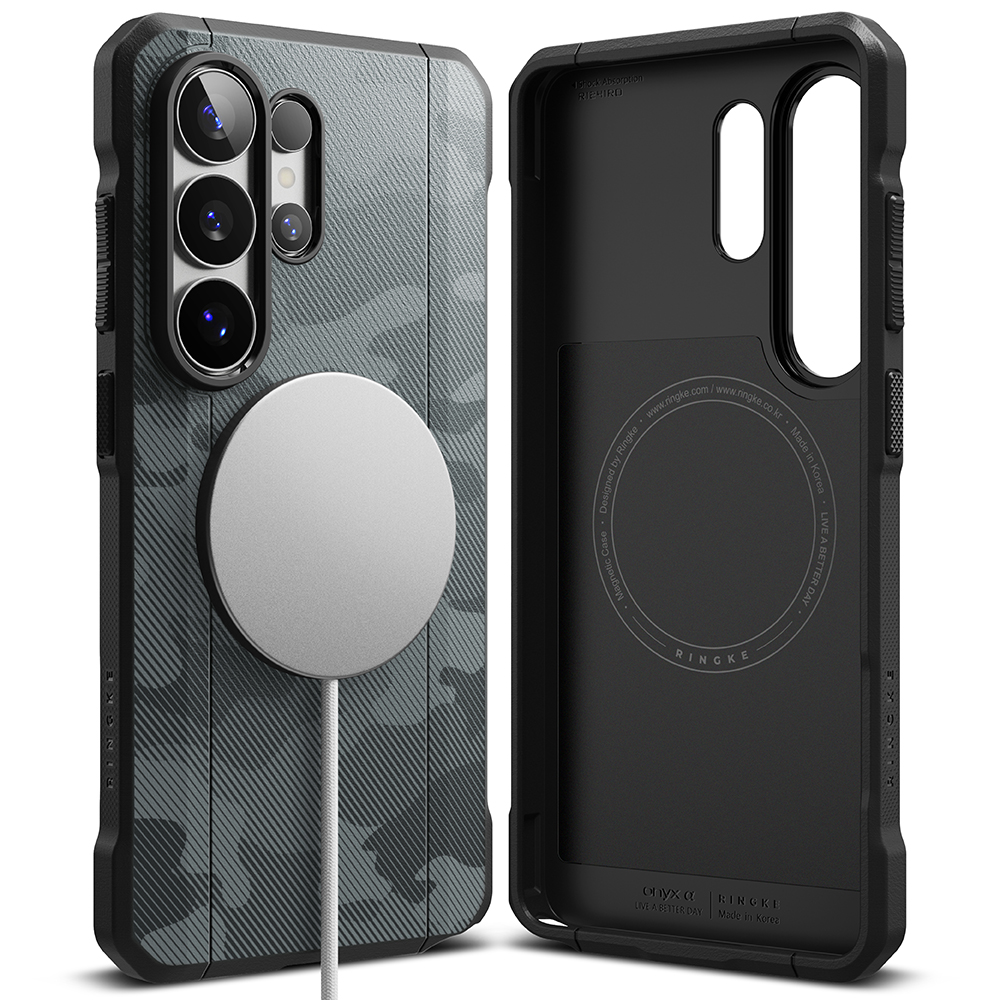 Ringke - Onyx Alpha MagSafe - Samsung Galaxy S26 Ultra - Maskáčová černáPředstavujeme vám Ringke Onyx Alpha MagSafe, pouzdro, které posouvá hranice odolnosti a funkčnosti pro váš nový chytrý telefon. Tento model v atraktivním provedení Camo Black kombinuje moderní maskáčový vzor s precizním inženýrstvím. Design krytu sází na taktický vzhled a matný povrch, který je nejen vysoce odolný proti otiskům prstů, ale díky své hrubší textuře zajišťuje maximálně bezpečný úchop. Zadní strana je vybavena integrovaným magnetickým kroužkem, který zajišťuje dokonalé spojení s veškerým MagSafe příslušenstvím, od nabíječek až po peněženky.