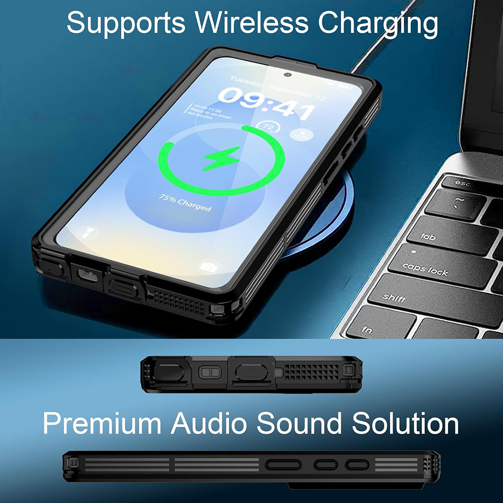 Tento model se pyšní certifikací IP68, což zaručuje plnou vodotěsnost a vysokou odolnost proti prachu. Pouzdro poskytuje kompletní 360° ochranu celého těla přístroje a splňuje náročné standardy Military Grade Drop Test pro maximální odolnost při pádech z výšky. I přes svou robustnost si zachovává plnou kompatibilitu s bezdrátovým nabíjením. Součástí balení je také praktické poutko na zápěstí, které zvyšuje bezpečnost při manipulaci v extrémních situacích.