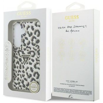 Guess - Kryt IML Leopard Print Triangle (GUHMS26SHLEGTGLK) - Samsung Galaxy S26 - černýDesign: Módní černý kryt s decentnějším temným leopardím vzorem, který doplňuje neodmyslitelné luxusní kovové logo ve tvaru otazníku s trojúhelníkem. Kryt vyniká svou dokonalou přiléhavostí a snadným přístupem ke konektorům.