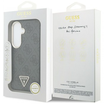Kryt Guess - 4G Triangle Logo MagSafe - Samsung Galaxy S26 černýTento luxusní kryt představuje esenci prémiového životního stylu. Design kombinuje plošný 4G vzor v elegantním černém provedení s dominantním ikonickým kovovým trojúhelníkovým logem na zadní straně a zabudovaným MagSafe kroužkem.
