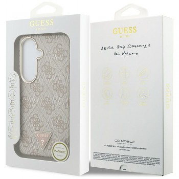 Kryt Guess - 4G Triangle Logo MagSafe - Samsung Galaxy S26 růžovýTento luxusní kryt představuje esenci prémiového životního stylu. Design kombinuje plošný 4G vzor v krásném růžovém provedení s dominantním ikonickým kovovým trojúhelníkovým logem na zadní straně a zabudovaným MagSafe kroužkem.