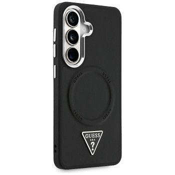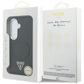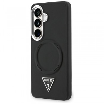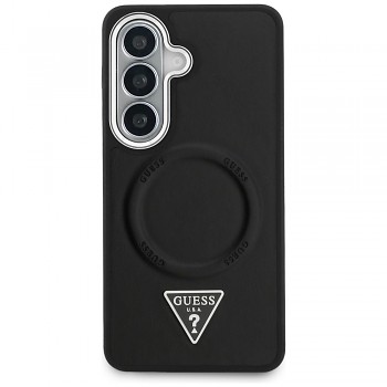 Kryt Guess - Embossed Ring Triangle Logo MagSafe (GUHMS26SPSDTSCMK) - Samsung Galaxy S26 ČernýKryt má tmavý, velmi vkusný vzhled s reliéfním prstencem a ikonickým trojúhelníkovým znakem uprostřed zadní části.