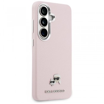 Kryt Karl Lagerfeld - Wrapped Grained Leather with K&C Head Pin MagSafe - Samsung Galaxy S26 růžovýMimořádně propracovaný kryt pro luxusní pocit při držení telefonu. Záda tvoří zajímavě zrnitá vrstva s koženým vzhledem (Grained Leather) v růžovém odstínu, ozvláštněná o jemný odznáček s hlavou Karla a Choupette.