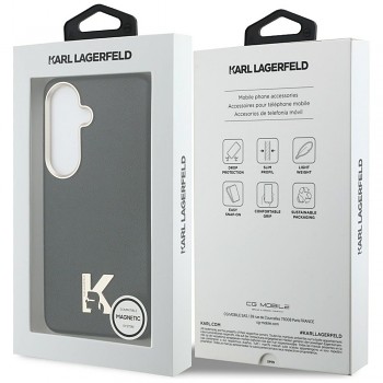 Kryt Karl Lagerfeld - Wrapped Grained Leather with K Head Logo MagSafe - Samsung Galaxy S26 černýMinimalistický, ale nesmírně elegantní kryt s hrubou koženou texturou (Grained). Dominantním prvkem černého pozadí je výrazné logo ve tvaru hlavy Karla Lagerfelda. Pouzdro elegantně skrývá magnetický systém MagSafe.