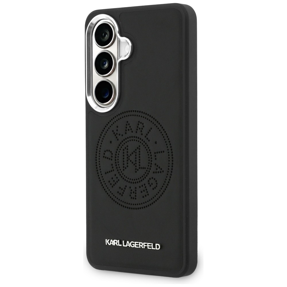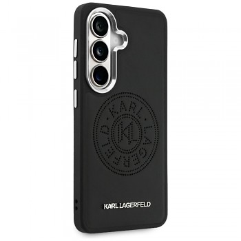 Kryt Karl Lagerfeld - Wrapped Leather with Karl Round Point Logo MagSafe (KLHMS26SPSKRPMK) - Samsung Galaxy S26 ČernýKryt má velmi minimalistický černý kožený vzhled doplněný elegantním kulatým odznakem s logem v dolní části.