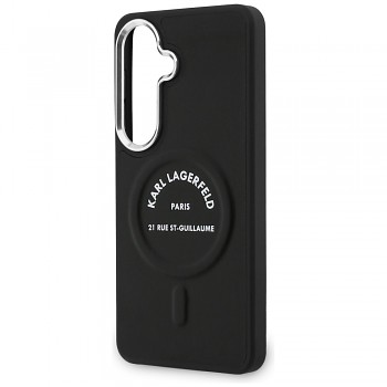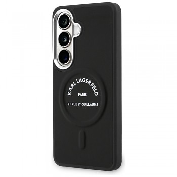 Kryt Karl Lagerfeld - Wrapped Leather with Karl RSG Logo MagSafe (KLHMS26SPSKRSGEK) - Samsung Galaxy S26 ČernýČistá černá kůže a nápadné, plasticky zpracované logo tvoří doplněk, který vyjadřuje vytříbený vkus svého majitele.