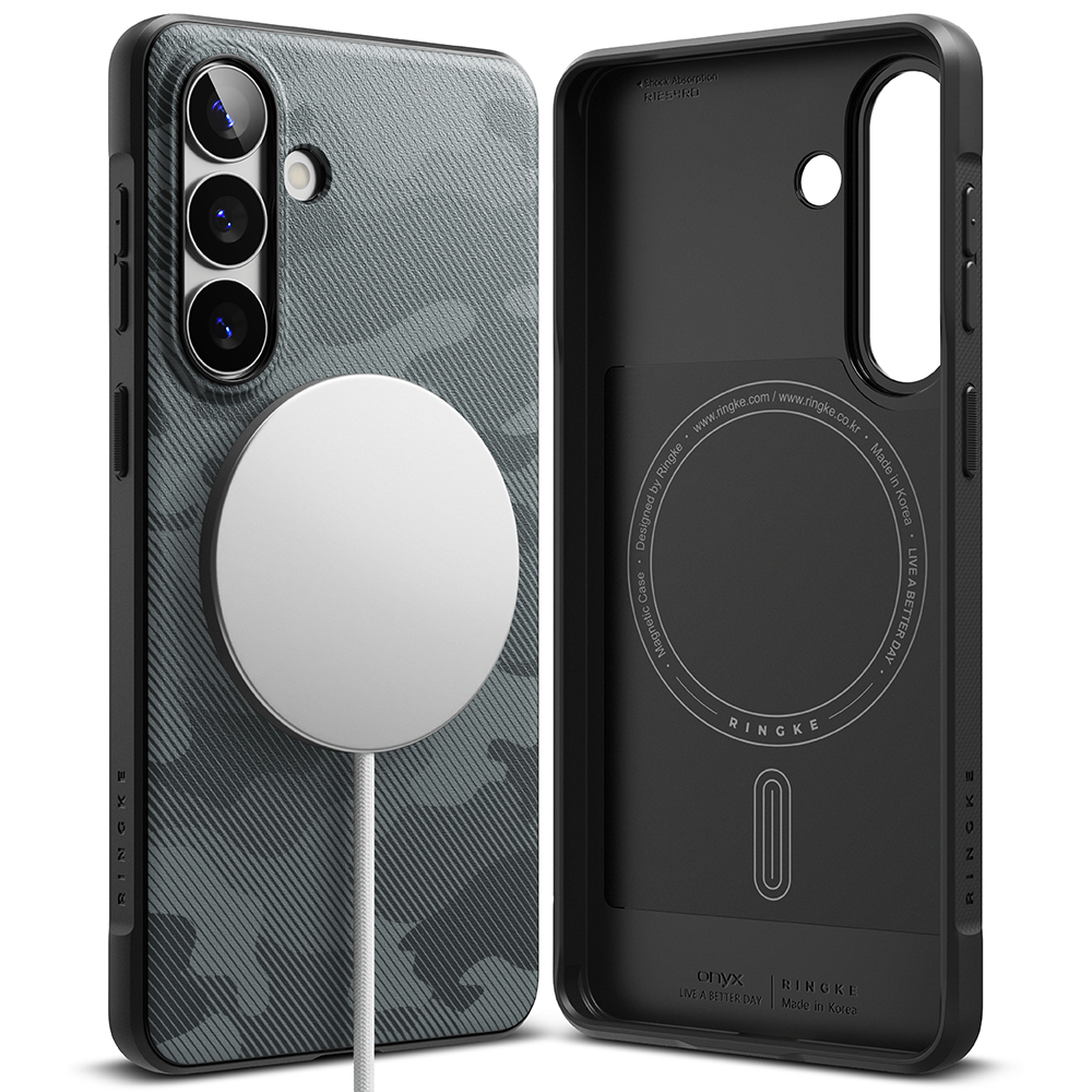 Ringke - Onyx MagSafe - Samsung Galaxy S26 - Maskáčová černáDopřejte svému telefonu nekompromisní bezpečí a styl s krytem Ringke Onyx MagSafe. Tento model v atraktivním provedení Camo Black kombinuje moderní maskáčový vzor s vysokou funkčností. Povrch krytu je opatřen jemnou zrnitou texturou, která je příjemná na dotek, nezanechává otisky prstů a především zajišťuje protiskluzový úchop, takže vám telefon jen tak nevyklouzne z ruky.