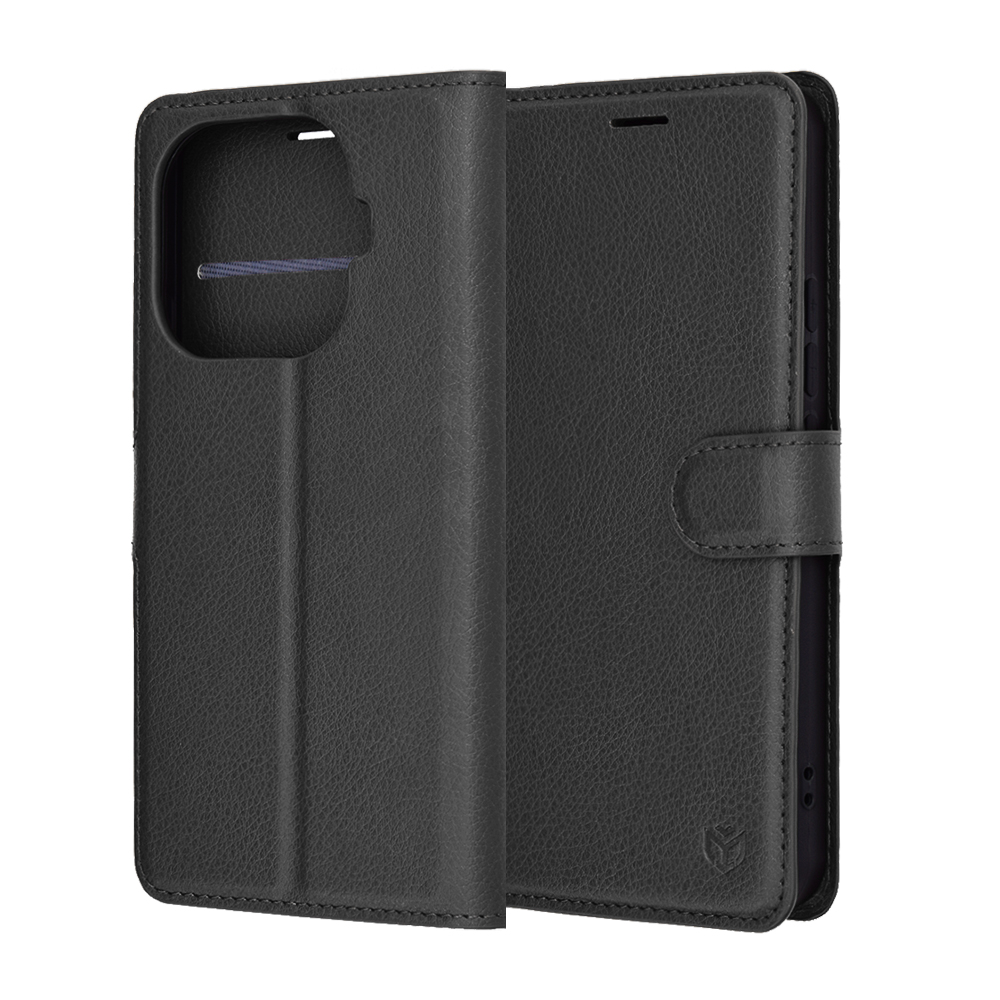 Pouzdro Techsuit Leather Folio se pyšní nadčasovým designem s jemnou texturou, která připomíná pravou kůži a dodává mu luxusní vzhled i příjemný pocit na dotek. Jeho černá barva zaručuje univerzálnost a snadné sladění s jakýmkoli stylem. Jedná se o typ "folio" pouzdra, které chrání telefon ze všech stran, včetně displeje. Uvnitř naleznete praktické přihrádky na platební karty a bankovky, což z něj činí ideálního společníka pro ty, kteří chtějí mít vše důležité pohromadě. Pouzdro lze navíc snadno složit do praktického stojánku, což oceníte při sledování videí nebo videohovorech. Telefon je bezpečně uchycen v precizně tvarované vnitřní vaničce z odolného materiálu, která zajišťuje snadný přístup ke všem portům a tlačítkům bez omezení funkčnosti.