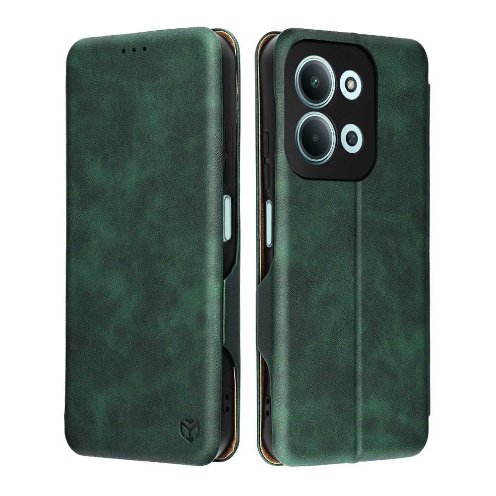 Pouzdro Safe Wallet Plus je navrženo jako flipové pouzdro peněženkového typu, které chrání telefon ze všech stran. Jeho povrch má jemnou, lehce patinovanou texturu v odstínu tmavě zelené, což mu propůjčuje luxusní a nadčasový vzhled. Vnitřní strana flipu nabízí praktické sloty pro platební karty a větší kapsu na bankovky, takže můžete mít vše důležité vždy u sebe. Díky promyšlené konstrukci lze pouzdro snadno složit do funkčního stojánku, ideálního pro pohodlné sledování videí nebo videohovory. Samozřejmostí jsou přesné výřezy pro fotoaparát, konektory a reproduktory, které zajišťují plnou funkčnost telefonu bez omezení. Pouzdro je vybaveno integrovaným magnetem pro bezpečné uzavření a má decentní logo Techsuit vyražené v rohu.