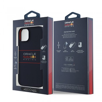 Pouzdro je vyrobeno z prémiového silikonu, který je příjemný na dotek a zajišťuje pevný úchop, čímž minimalizuje riziko vyklouznutí telefonu z ruky. Jeho matný povrch v hluboké námořnické modři dodává pouzdru sofistikovaný vzhled. Dominantou designu je ikonické logo Red Bull Racing, které je decentně umístěno na zadní straně a podtrhuje sportovní eleganci. Integrovaný MagSafe kroužek zajišťuje bezproblémovou kompatibilitu s veškerým MagSafe příslušenstvím, od bezdrátových nabíječek po peněženky, a garantuje silné a stabilní magnetické připojení.