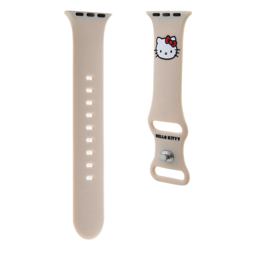 Řemínek Hello Kitty Liquid Silicone Kitty Head Logo pro Apple Watch 38-40mm Beige