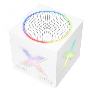 Reproduktor BR101 Rubik zaujme na první pohled svým minimalistickým a moderním designem, který je inspirován tvarem kostky. Tělo reproduktoru je vyrobeno z odolného ABS plastu v čistě bílé barvě. Jeho kompaktní rozměry a nízká hmotnost z něj dělají snadno přenosné zařízení. Horní strana je osazena měničem krytým jemnou mřížkou, která zajišťuje optimální šíření zvuku. Na boční straně se nachází intuitivní ovládací panel a praktické poutko pro snadné zavěšení nebo přenášení.