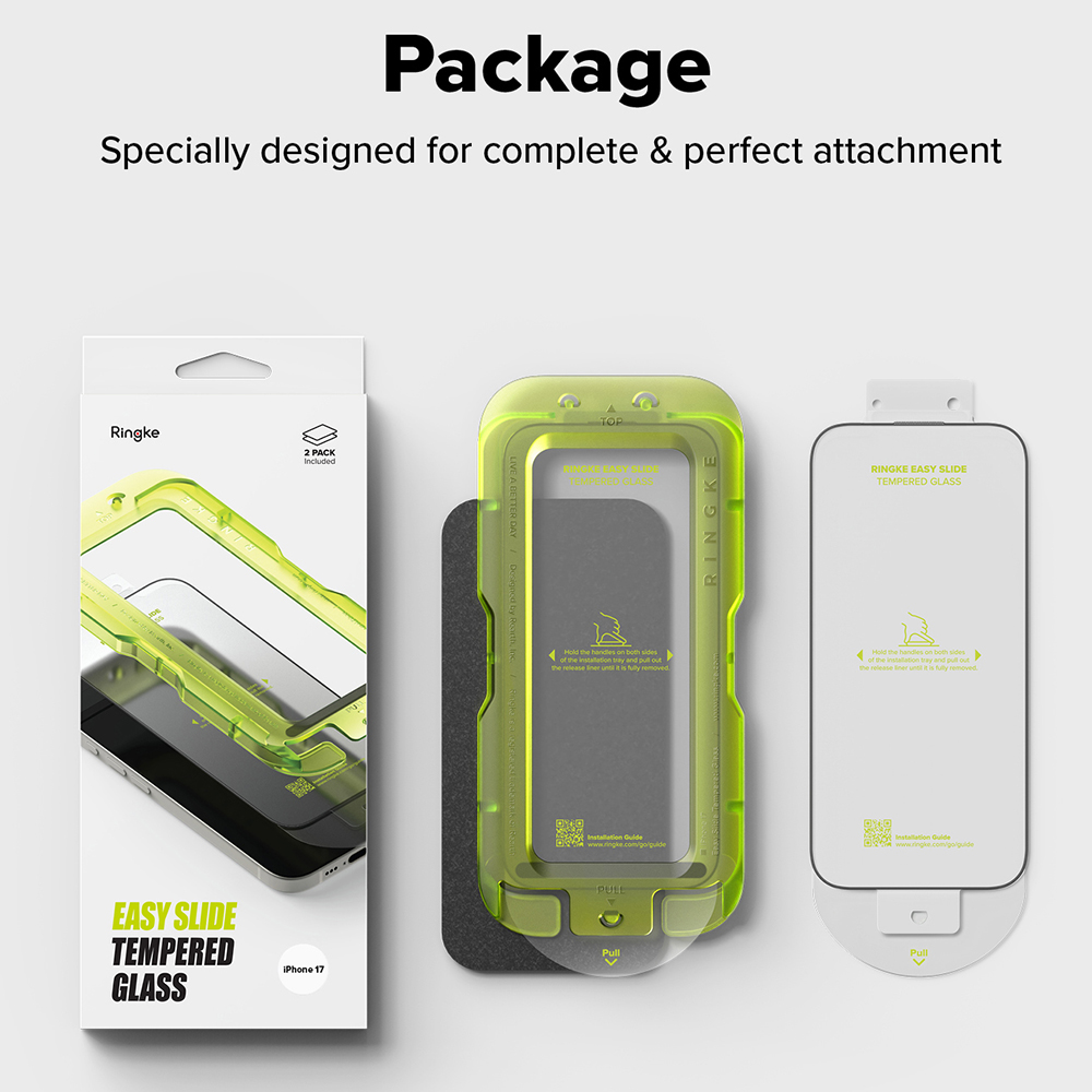 Představujeme Ringke Easy Slide tvrzené sklo, které přináší revoluci v ochraně displeje vašeho iPhone 17. Tento produkt je navržen s důrazem na maximální odolnost a bezkonkurenční jednoduchost instalace. Balení obsahuje dva kusy čirého tvrzeného skla, což zajišťuje dlouhodobou ochranu nebo možnost výměny.