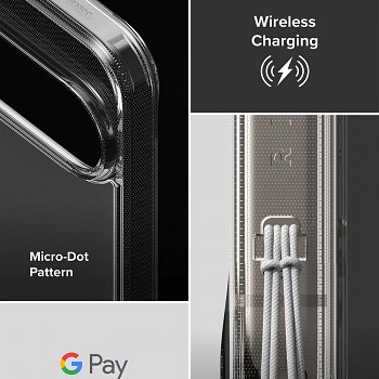 Precizní zpracování zahrnuje zvýšené okraje o tloušťce 1,2 mm kolem fotoaparátu a 1,5 mm kolem displeje, což zajišťuje maximální ochranu těchto citlivých částí před poškrábáním při položení na rovný povrch. Rohy obalu jsou vybaveny technologií Air Pocket, která efektivně absorbuje nárazy a splňuje vojenský standard odolnosti MIL STD 810G-516.6. Tlačítka jsou chráněna speciálním Custom-Fit Button Designem, který zachovává jejich citlivost a snadné ovládání. Obal je také plně kompatibilní s bezdrátovým nabíjením a Google Pay.