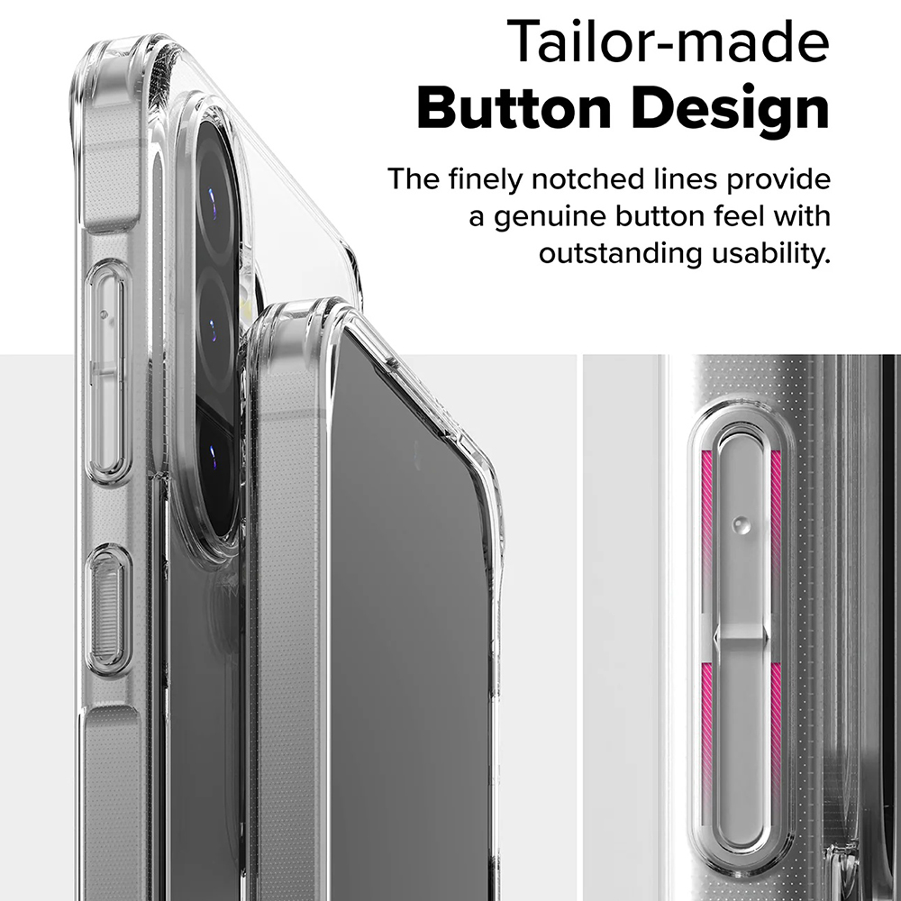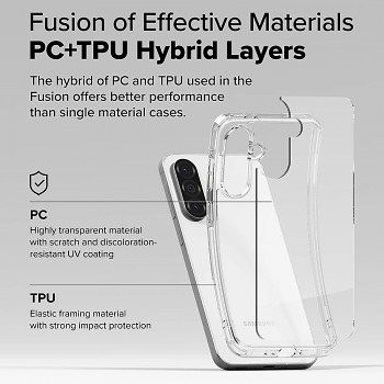 Pouzdro Ringke Fusion se pyšní hybridní konstrukcí, která kombinuje dva efektivní materiály pro bezkonkurenční ochranu. Zadní strana je vyrobena z vysoce transparentního polykarbonátu (PC), který je odolný proti poškrábání a opatřený UV vrstvou zabraňující žloutnutí, čímž zajišťuje dlouhotrvající čistotu a průhlednost. Flexibilní rámeček z termoplastického polyuretanu (TPU) absorbuje nárazy a poskytuje pevnou ochranu proti pádům.