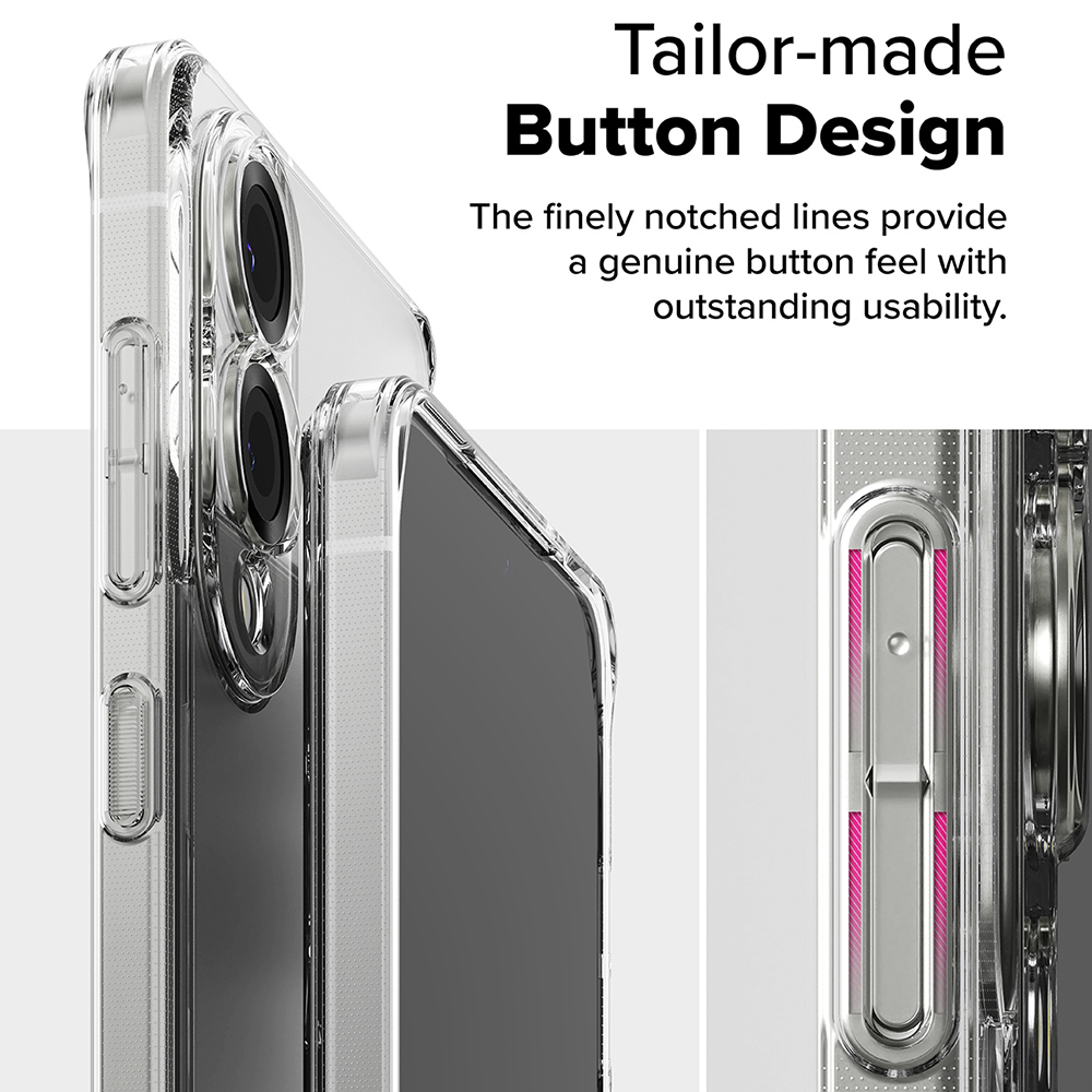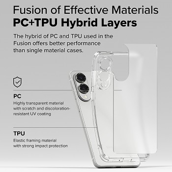 Design pouzdra Ringke Fusion je založen na hybridní konstrukci. Zadní strana je vyrobena z dokonale čirého a tvrdého polykarbonátu, který je odolný proti žloutnutí a poškrábání, a umožňuje tak plně vyniknout originální barvě a designu vašeho Samsung Galaxy S25 Edge. Flexibilní a nárazy pohlcující TPU rámeček pak efektivně chrání boky a rohy telefonu před pády a nárazy. Pouzdro je navrženo s precizními výřezy pro fotoaparát, tlačítka a porty, což zajišťuje plnou funkčnost a snadný přístup ke všem ovládacím prvkům. Zesílené rohy poskytují dodatečnou ochranu v nejzranitelnějších místech. Nechybí ani unikátní integrované otvory QuikCatch, které umožňují snadné a bezpečné připevnění řemínků nebo šňůrek přímo na kryt.