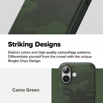 Ringke Onyx Design pouzdro iPhone 16 Plus maskáčově zelenéObjevte dokonalou kombinaci stylu a spolehlivé ochrany s pouzdrem Ringke Onyx Design pro váš iPhone 16 Plus. Toto pouzdro v elegantní maskáčově zelené barvě je navrženo tak, aby nejen chránilo váš telefon před každodenními nástrahami, ale také mu dodalo jedinečný a moderní vzhled.