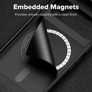 Pouzdro Ringke Onyx MagSafe se pyšní moderním broušeným designem s matnou, jemně texturovanou povrchovou úpravou, která zajišťuje protiskluzový úchop a příjemný pocit v ruce. Je vyrobeno z prémiového TPU, materiálu známého pro svou flexibilitu a schopnost pohlcovat nárazy. Díky svému tenkému profilu pouzdro nepřidává telefonu zbytečný objem, ale zároveň poskytuje robustní ochranu. Klíčovou vlastností je integrovaná podpora MagSafe, která díky precizně vloženým magnetům zajišťuje bezproblémové a pevné připojení veškerého MagSafe příslušenství, jako jsou nabíječky nebo peněženky.