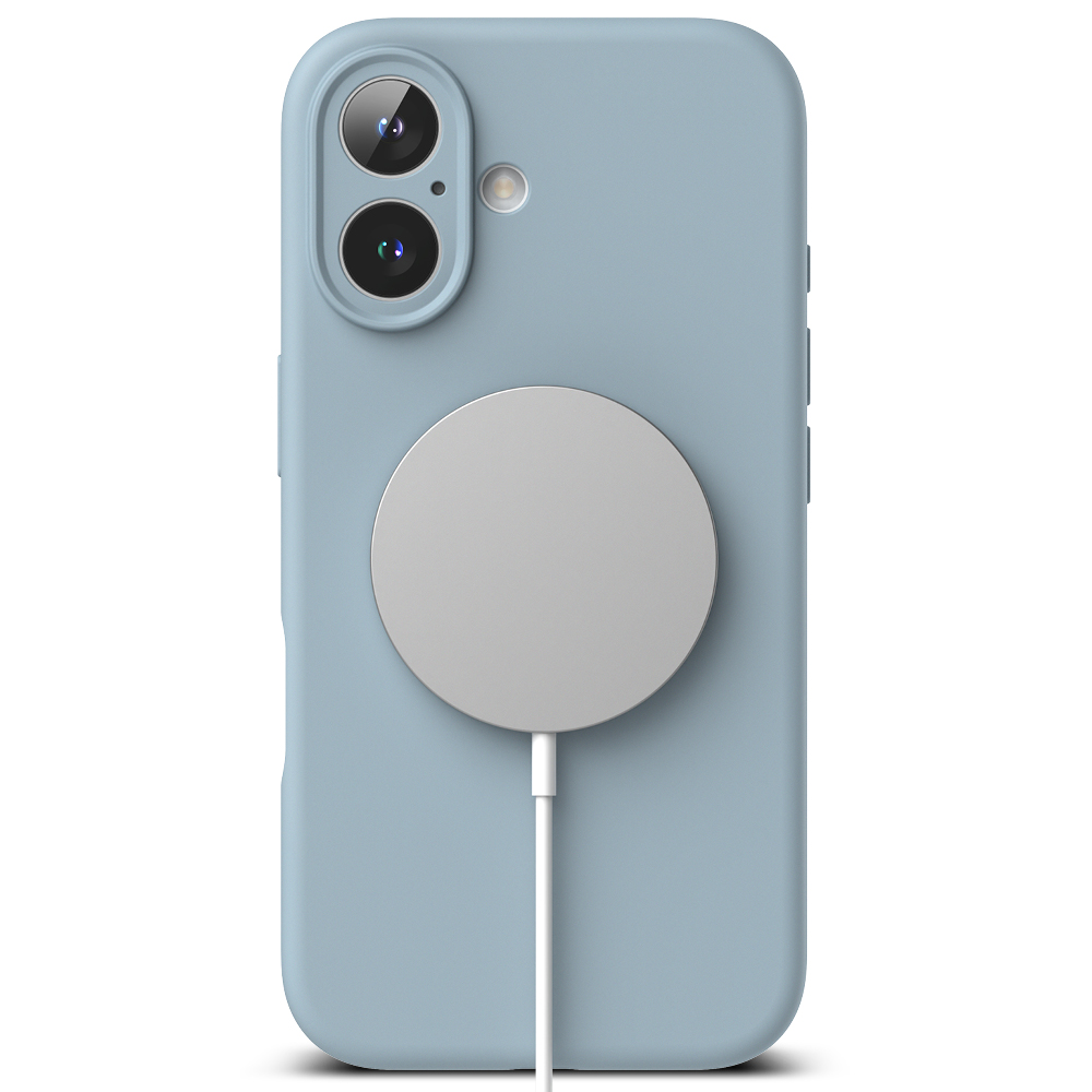 Kryt Ringke Silicone Magnetic MagSafe v elegantní modré barvě se vyznačuje minimalistickým a sofistikovaným designem. Vnější strana je vyrobena z hladkého, matného tekutého silikonu, který je příjemný na dotek a zajišťuje pevný a jistý úchop. Vnitřní část pouzdra je potažena měkkou, semišovou podšívkou ve stejném odstínu modré, která poskytuje dodatečnou ochranu proti poškrábání a tlumí nárazy. Precizní zpracování zahrnuje dokonale tvarované výřezy pro fotoaparát, nabíjecí port a reproduktory, zatímco tlačítka hlasitosti a napájení jsou chráněna silikonem, avšak zůstávají plně responzivní. Integrovaný MagSafe kroužek je diskrétně umístěn uvnitř krytu, což zajišťuje bezproblémovou funkčnost s veškerým MagSafe příslušenstvím.