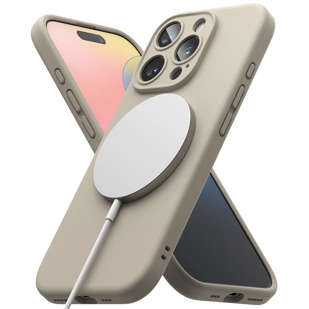 Pouzdro Ringke Silicone Magnetic MagSafe je vyrobeno z vysoce kvalitního tekutého silikonu, který zajišťuje příjemný a pevný úchop. Jeho matný povrch v elegantní kamenné barvě je nejen vizuálně atraktivní, ale také odolný proti otiskům prstů a snadno se čistí. Vnitřní strana krytu je opatřena jemnou semišovou podšívkou, která chrání záda vašeho iPhonu před poškrábáním. Integrovaný magnetický kroužek MagSafe zaručuje bezproblémovou kompatibilitu s veškerým MagSafe příslušenstvím, od bezdrátových nabíječek po peněženky, a zajišťuje tak rychlé a stabilní připojení. Precizní výřezy pro porty a reproduktory, spolu s krytými tlačítky, zajišťují plnou funkčnost telefonu. Zvýšené okraje kolem displeje a fotoaparátu poskytují extra ochranu proti poškrábání a nárazům při položení na rovný povrch. Díky tenkému profilu si váš iPhone 16 Pro zachová svůj elegantní vzhled a pohodlně se vejde do kapsy. Nechybí ani praktické otvory QuikCatch pro snadné připevnění poutka nebo šňůrky, což zvyšuje bezpečnost a možnosti nošení.
