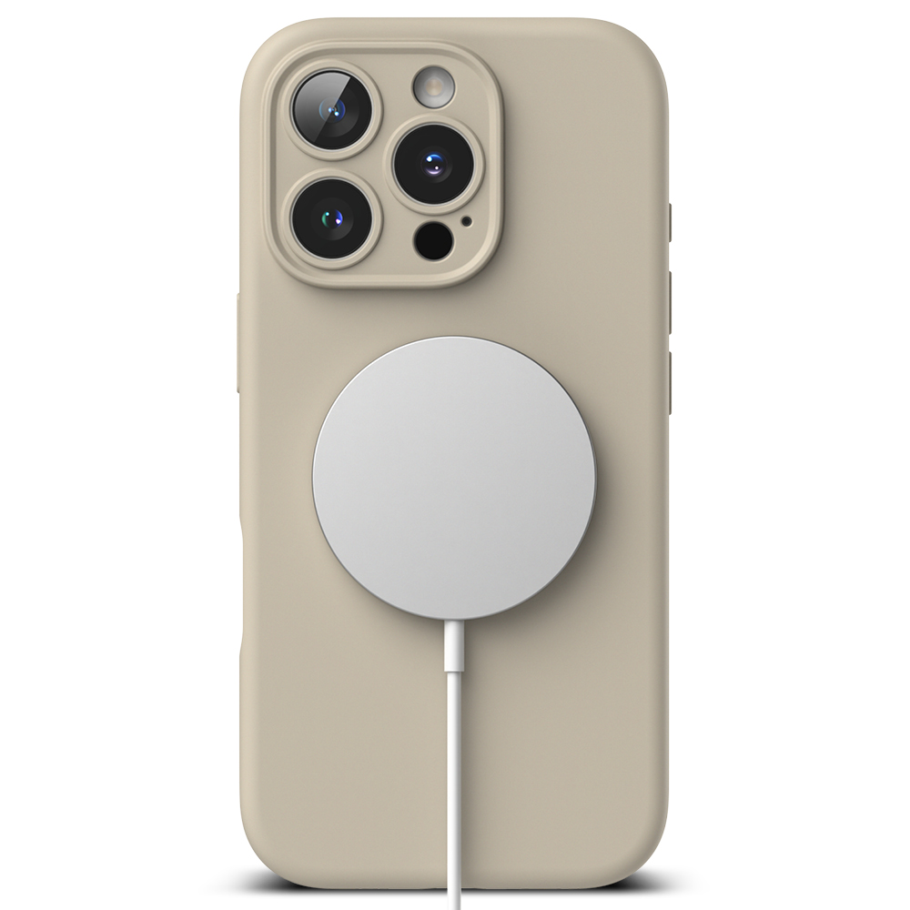 Pouzdro Ringke Silicone Magnetic MagSafe se pyšní hladkým a matným silikonovým povrchem v příjemném odstínu "Stone", který připomíná přírodní kámen. Tento povrch je nejen esteticky přitažlivý, ale také příjemný na dotek a zajišťuje pevný úchop, čímž minimalizuje riziko vyklouznutí telefonu z ruky. Vnitřní strana pouzdra je opatřena jemnou semišovou podšívkou, která chrání zadní stranu telefonu před poškrábáním a drobnými oděrkami. Integrovaný magnetický kroužek MagSafe zajišťuje bezproblémovou kompatibilitu s veškerým MagSafe příslušenstvím, od bezdrátových nabíječek po peněženky, a garantuje silné a stabilní připojení. Přesné výřezy pro fotoaparáty, porty a tlačítka zajišťují plnou funkčnost a snadný přístup ke všem ovládacím prvkům.