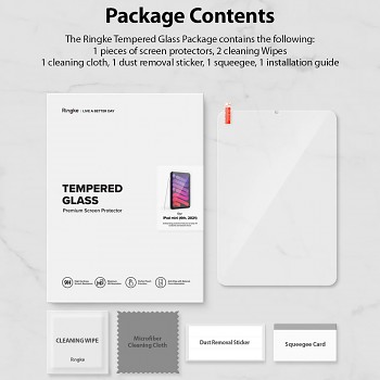 Ringke Temperované sklo na displej iPad mini 6 (2021) mini 7 (2024) čiréDopřejte svému iPadu mini 6 (2021) nebo iPadu mini 7 (2024) tu nejlepší ochranu s prémiovým temperovaným sklem od značky Ringke. Toto čiré ochranné sklo je navrženo tak, aby poskytovalo maximální ochranu proti poškrábání, prasklinám a nárazům, aniž by to ovlivnilo vizuální zážitek nebo citlivost dotyku.