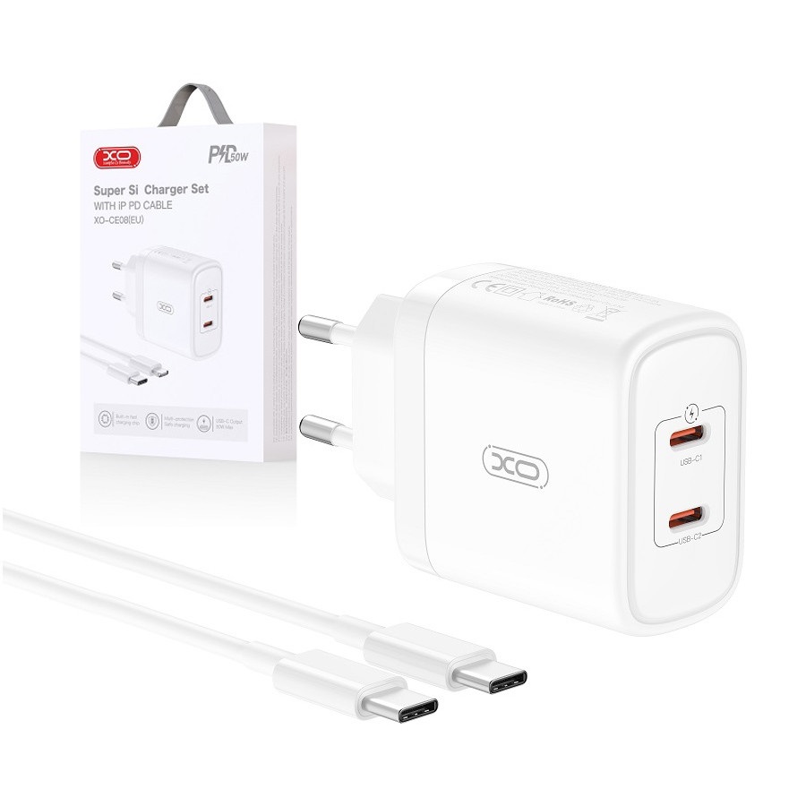Rychlonabíječka XO CE08 včetně datového kabelu USB-C 50W bíláZnačka XO přináší na trh kvalitní příslušenství za výhodné ceny.