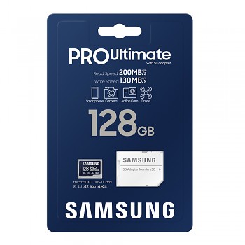 Samsung Memory Card PRO Ultimate MicroSDXC Adaptér 128GB modrá bíláPředstavujeme vám Samsung Memory Card PRO Ultimate MicroSDXC Adaptér 128GB, špičkové řešení pro rozšíření úložného prostoru vašich zařízení. Tato paměťová karta je navržena pro uživatele, kteří vyžadují maximální rychlost a spolehlivost pro ukládání fotografií ve vysokém rozlišení, 4K UHD videí, náročných aplikací a her.