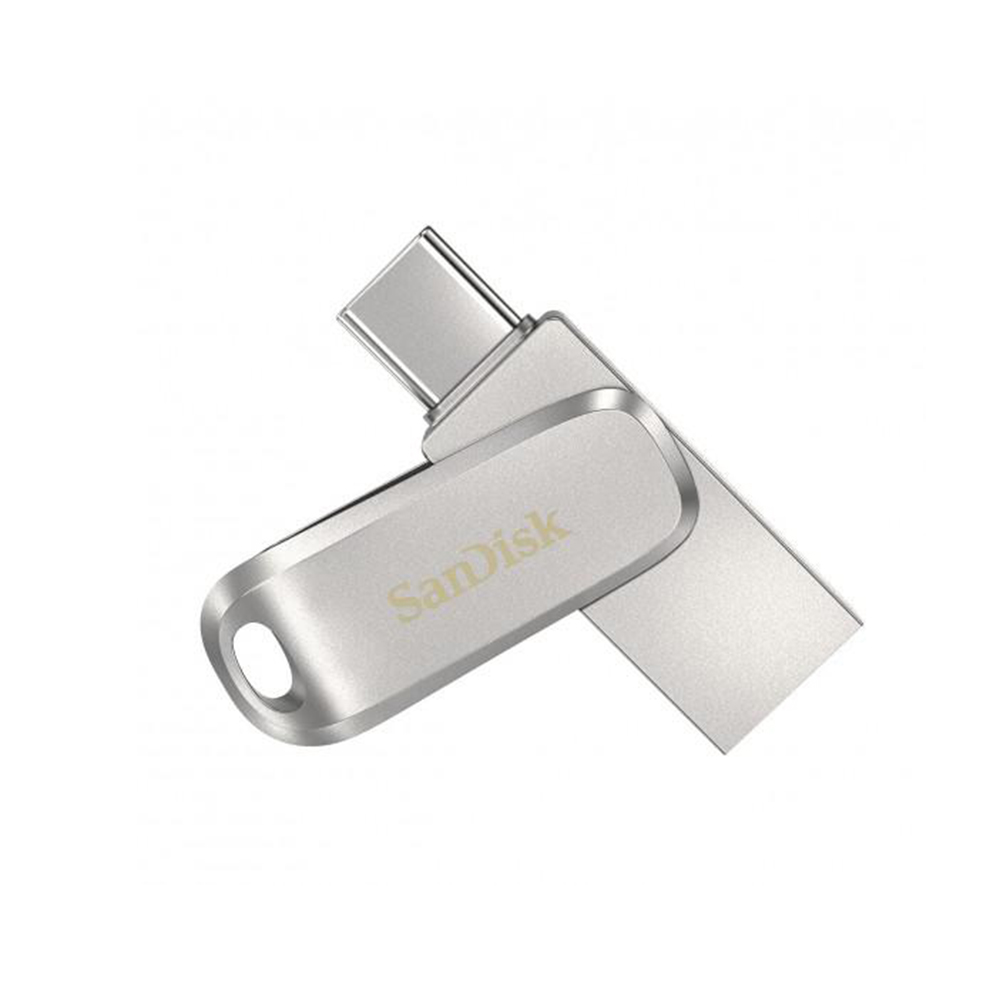 Flash disk SanDisk SDDDC4-064G-G46 se pyšní kompaktním a sofistikovaným designem v metalicky šedé barvě. Jeho otočná konstrukce chrání konektory, když se nepoužívají, a zároveň umožňuje snadné přepínání mezi USB Type-C a USB-A. Díky integrovanému očku jej můžete snadno připevnit na klíče nebo batoh, takže budete mít svá data vždy po ruce. Robustní kovové tělo zajišťuje odolnost a dlouhou životnost.