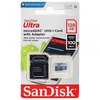 SanDisk paměťová karta Ultra s adaptérem Micro SDXC 128GB bíláRozšiřte úložný prostor svého zařízení a užívejte si více místa pro vaše vzpomínky s paměťovou kartou SanDisk Ultra Micro SDXC s kapacitou 128 GB. Tato karta je ideálním řešením pro ukládání fotografií ve vysokém rozlišení, Full HD videí a všech vašich oblíbených aplikací, aniž byste se museli obávat nedostatku místa.