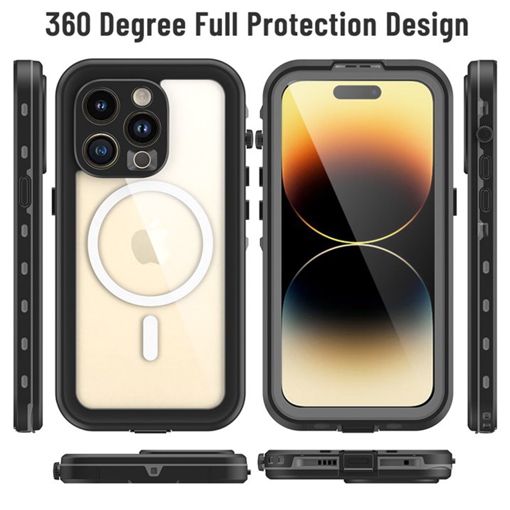 Toto pouzdro se pyšní vícevrstvou konstrukcí, která kombinuje pružné TPU pro absorpci nárazů a pevný polykarbonát (PC) pro strukturální pevnost. Nabízí kompletní 360° ochranu, včetně integrovaného chrániče obrazovky, který zajišťuje vysokou průhlednost a zachovává přirozený dotykový pocit. Díky certifikaci IP68 je pouzdro vodotěsné až do 2 metrů a zároveň splňuje vojenské standardy odolnosti proti pádu (Military Grade Drop Test), což zaručuje odolnost proti pádům až ze 2 metrů. Zadní strana pouzdra je průhledná, což umožňuje vyniknout originálnímu designu vašeho iPhonu, zatímco černé, robustní okraje a přední rám dodávají pouzdru sportovní a moderní vzhled. Integrovaný kroužek pro MagSafe zajišťuje plnou kompatibilitu s bezdrátovým nabíjením a příslušenstvím.