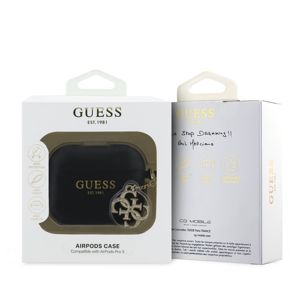 Silikonové pouzdro Guess 4G Charm pro AirPods Pro 3 BlackDodejte svým sluchátkům AirPods nádech luxusu a prvotřídní ochrany se silikonovým pouzdrem od renomované značky Guess. Tento stylový doplněk je ideální volbou pro každého, kdo hledá spojení elegantního designu a spolehlivé funkčnosti. Chraňte svá sluchátka a zároveň podtrhněte svůj osobní styl.