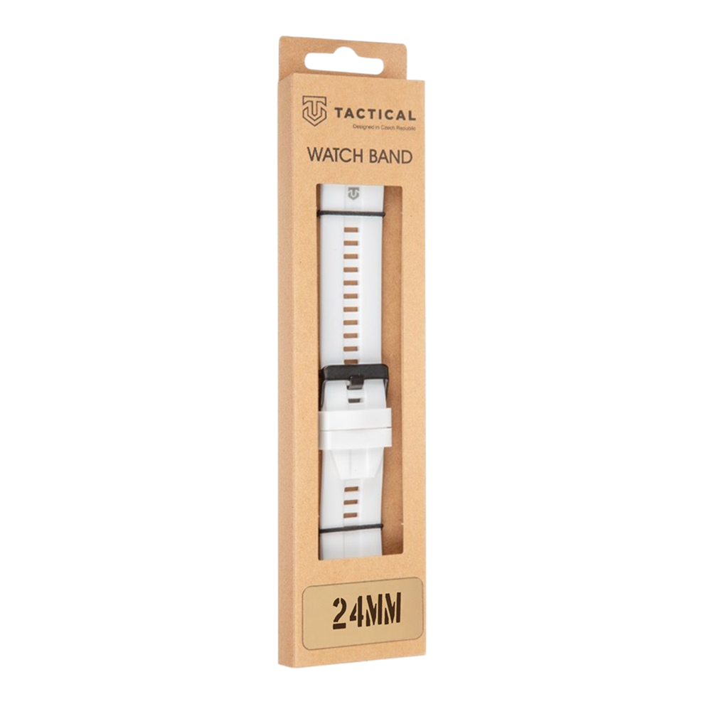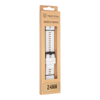 Silikonový řemínek Tactical Quick Release 24mm bílýDesign řemínku je sportovně-elegantní, tvořený hladkým a na dotek příjemným povrchem. Je vybaven 1,5 mm silným kovovým páskem s lesklou sponou a rychloupínacím konektorem pro okamžitou výměnu bez nářadí.